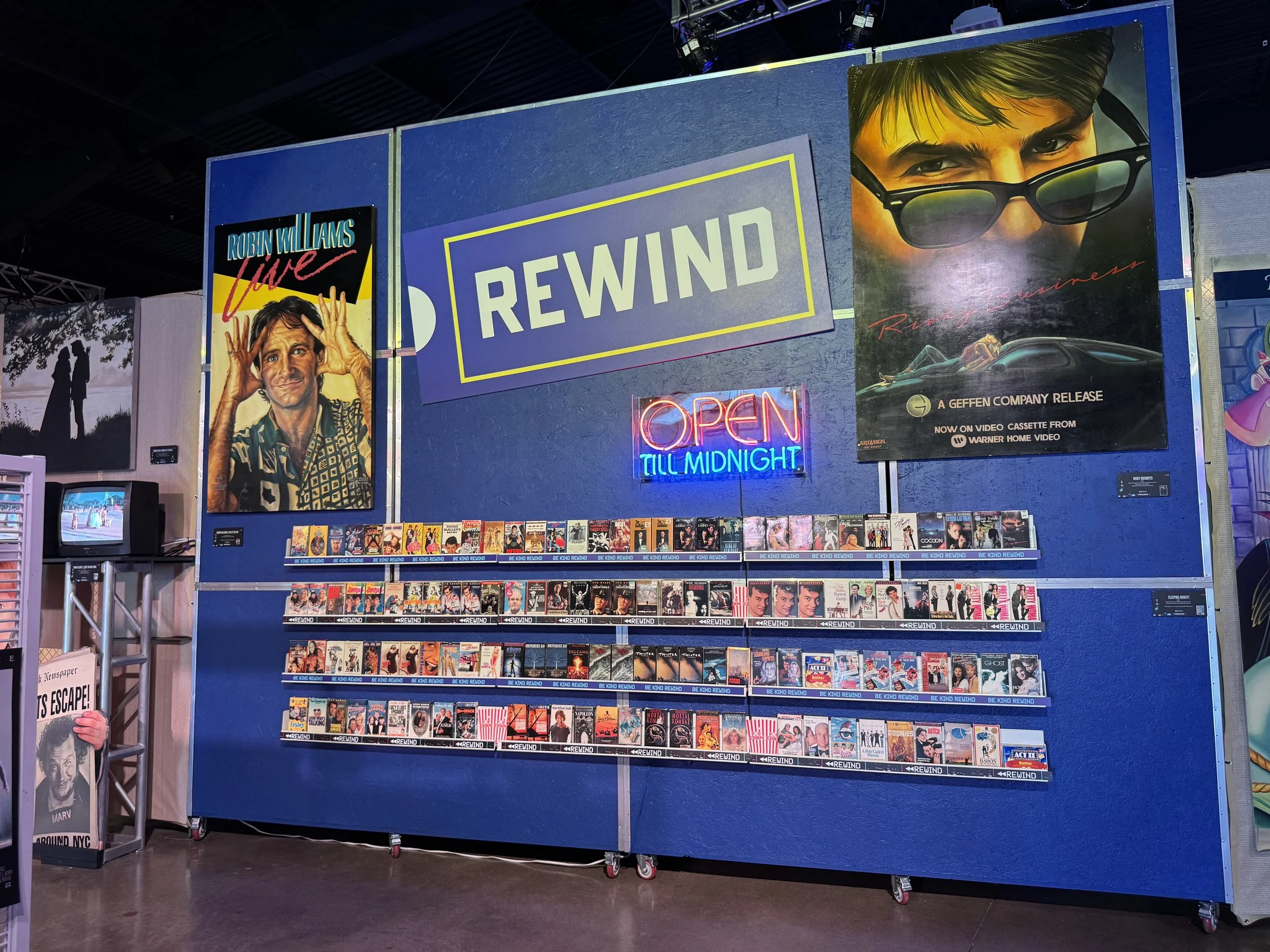 Experience the nostalgia of flipping through your favorite blockbuster hits at our REWIND video-rental pop-up.