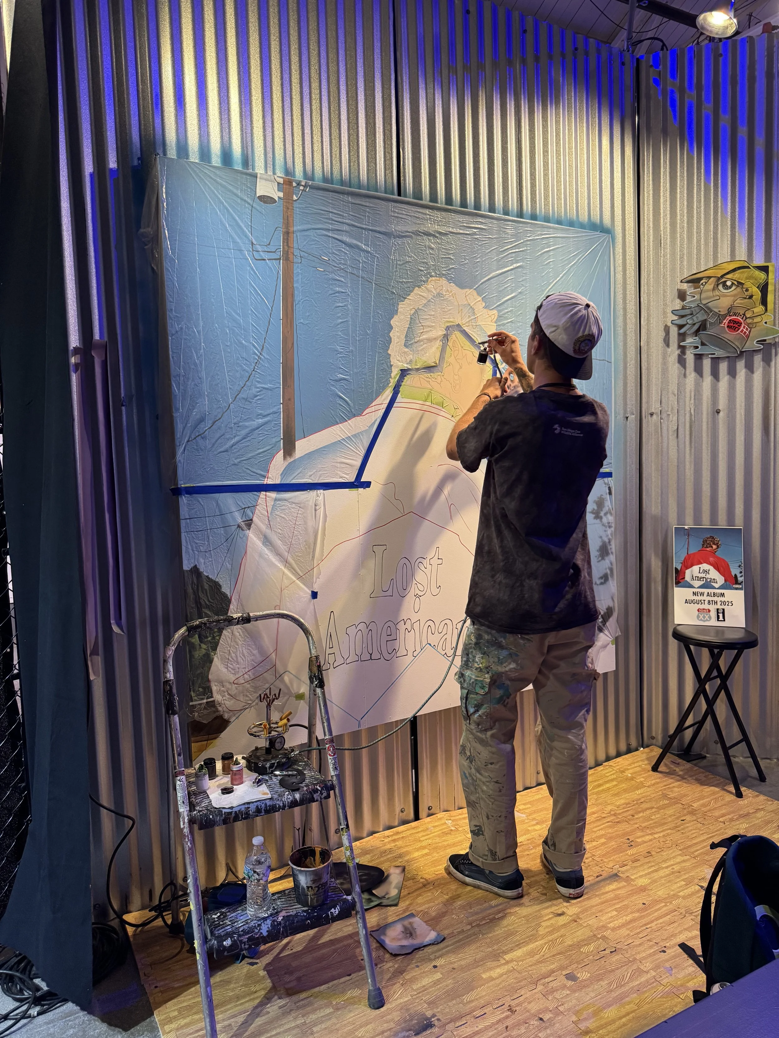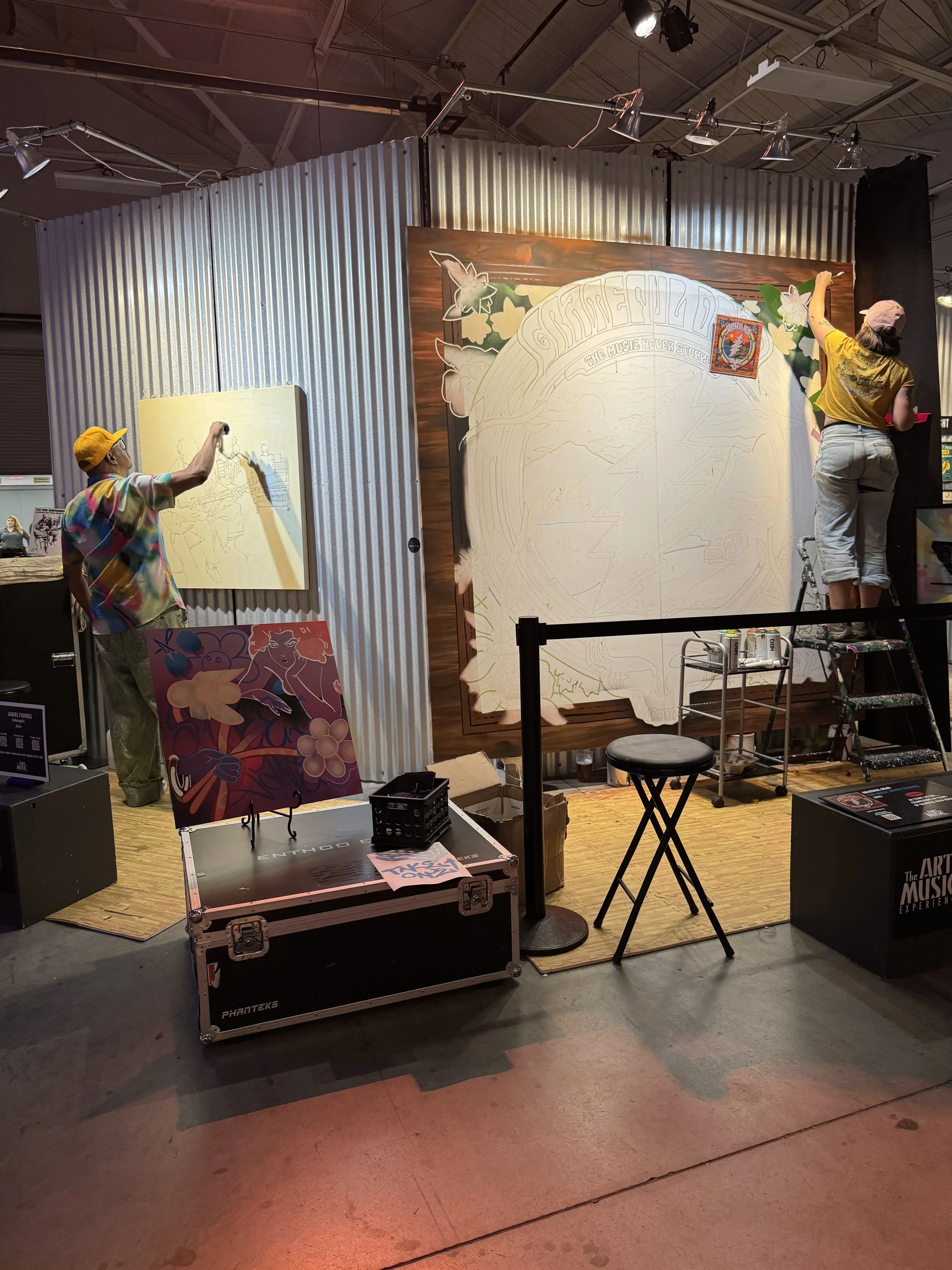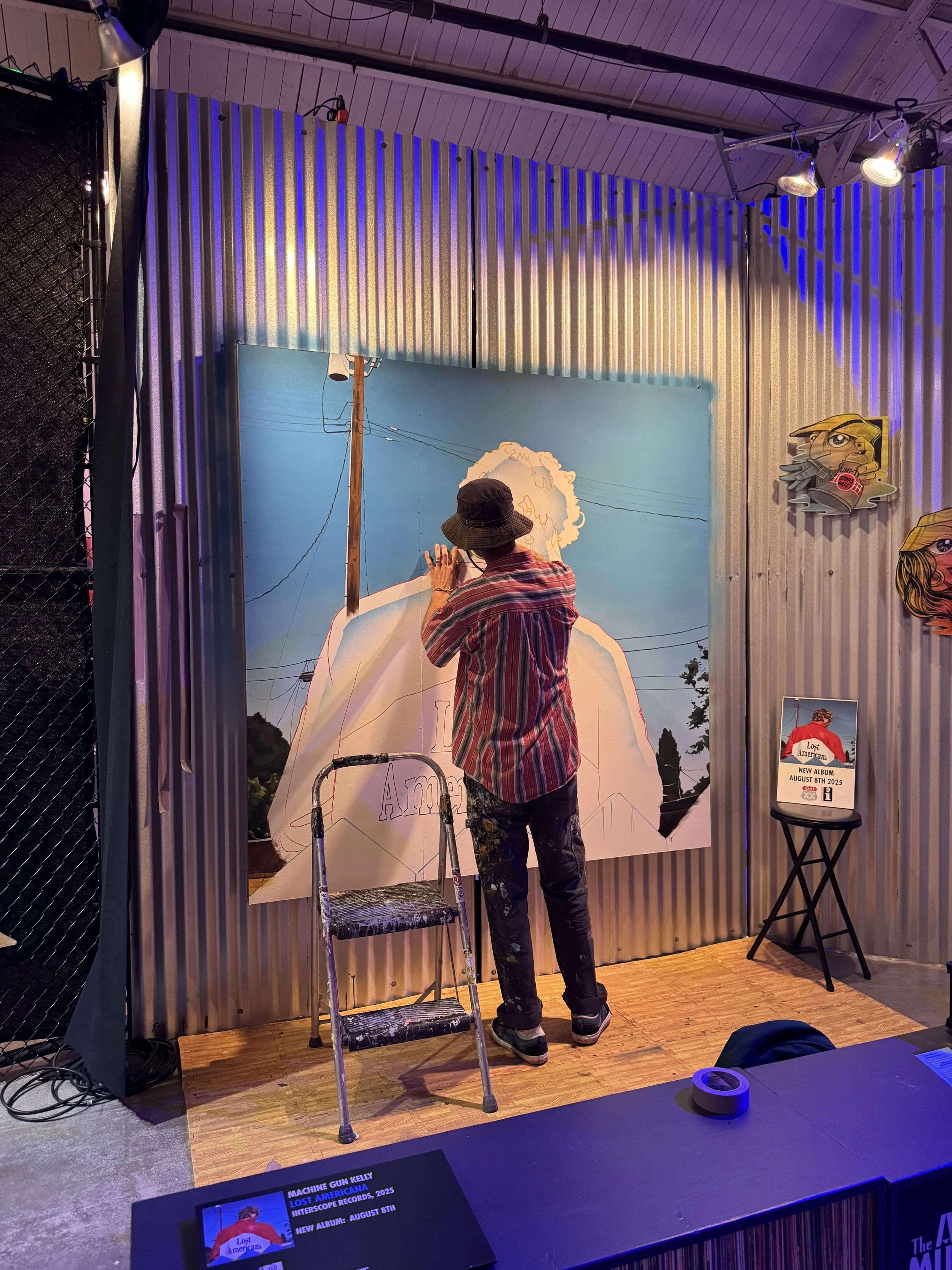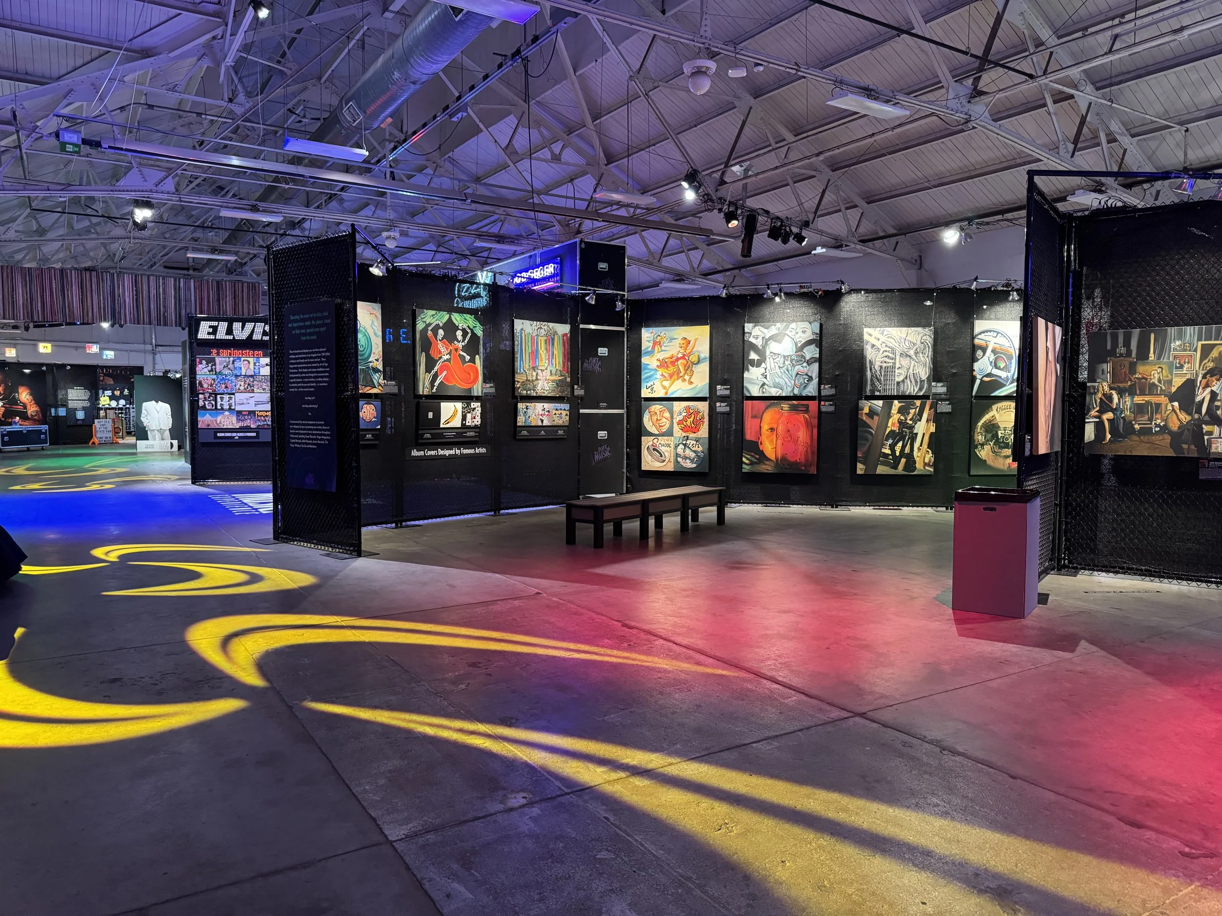 In In 2024, The Art of Music Experience arrived at the Indiana State Fair inside the Harvest Pavilion from August 1st to 17th. The exhibition featured over 100 works of hand-painted, large-scale artwork and neon from the AOM Collection, along with a Creator Spotlight Exhibit showcasing Henry Diltz Photography and Kosh (from Abbey Road to Hotel California). Guests experienced live painting inspired by Machine Gun Kelly’s Lost Americana, Grateful Dead’s The Music Never Stopped, and Wes Montgomery’s A Dynamic New Sound, alongside album-cover-themed exhibits, an INDY CD & Vinyl pop-up record store, and an interactive Ranker activation.